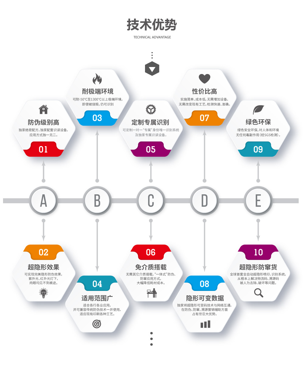 防偽:食品、煙草、酒類、藥品、化妝品、服裝、化妝品、油漆、線纜、